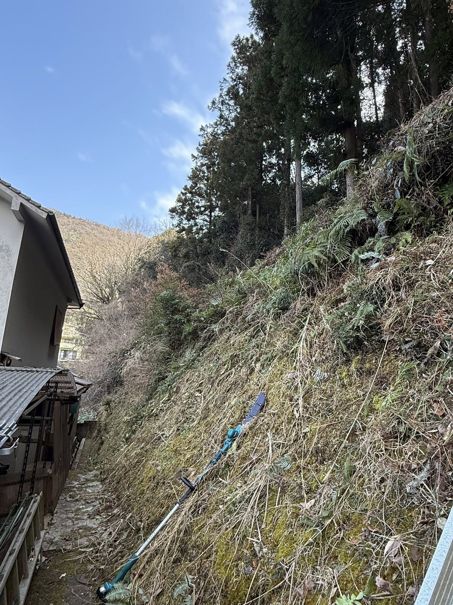 今日は、以前屋根でお世話になったお客様宅の裏側法面の下刈りを任せていただきました。