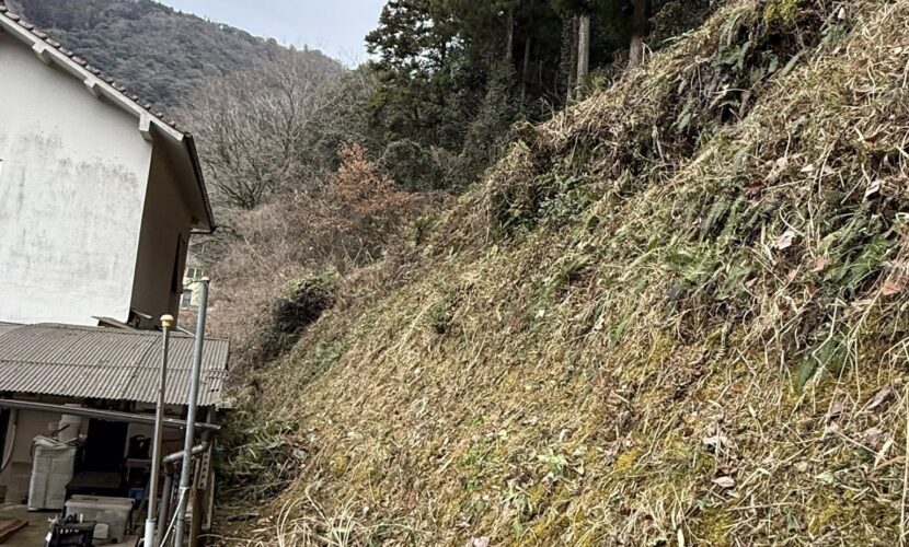 以前屋根でお世話になったお客様宅の裏側法面の下刈りを任せていただきました。